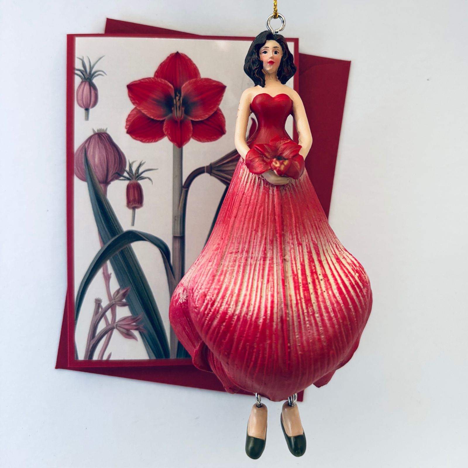 Das Amaryllis-Blumenmädchen bringt weihnachtlichen Glanz an Ihren Tannenbaum, Türkranz oder ins Fenster.