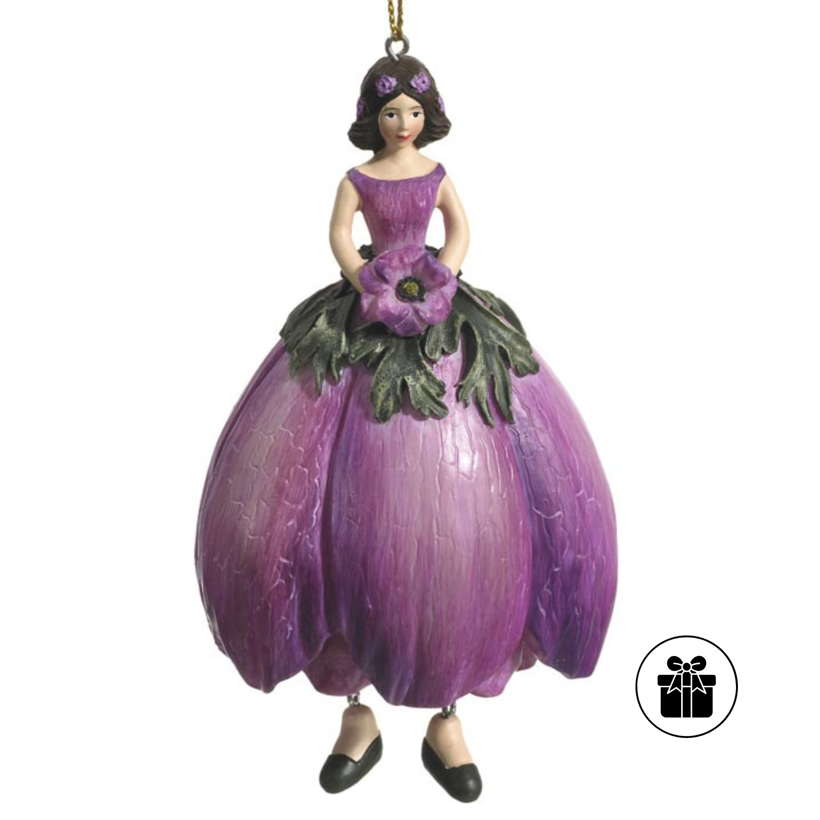 Das Blumenmädchen Anemone verkörpert den frischen Beginn des Frühlings. Mit ihrem eleganten, blütenförmigen Rock in zartem Lila und einem filigranen Anemonenblütendetail in der Hand bringt sie die Schönheit dieser besonderen Blume direkt in Ihr Heim.