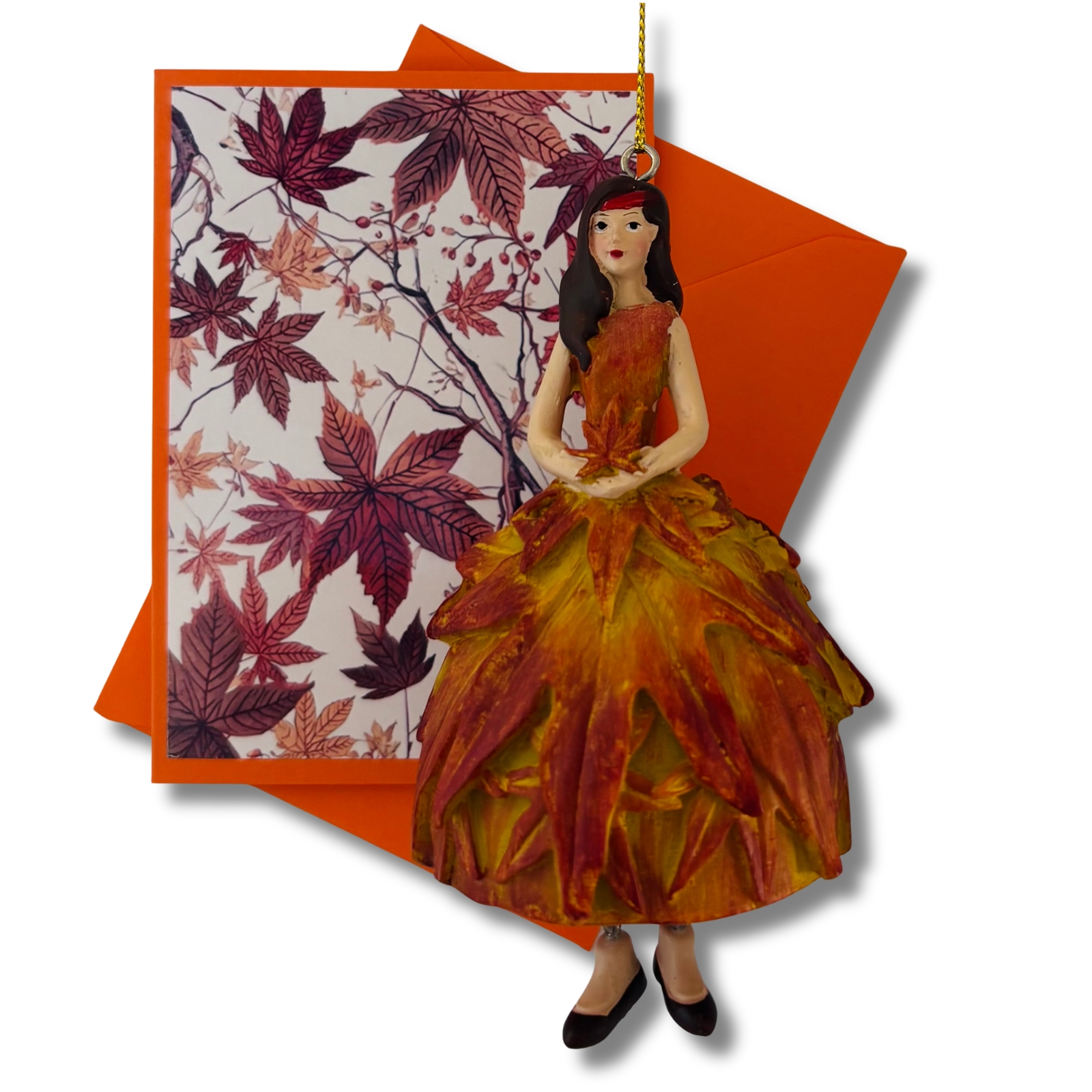 Diese liebevoll gestaltete Mini-Karte greift das Motiv des Ahorns auf und stellt die Pflanze selbst in den Mittelpunkt. Die Vorderseite zeigt das florale Motiv als zart gerahmten Akzent auf kräftigem Orange – abgestimmt auf das Ahorn-Blumenmädchen, aber auch für sich ein kleiner Blickfang. Ein separates Einlegeblatt liegt bei und bietet Raum für persönliche Grüße, kleine Botschaften oder feine Gedanken.