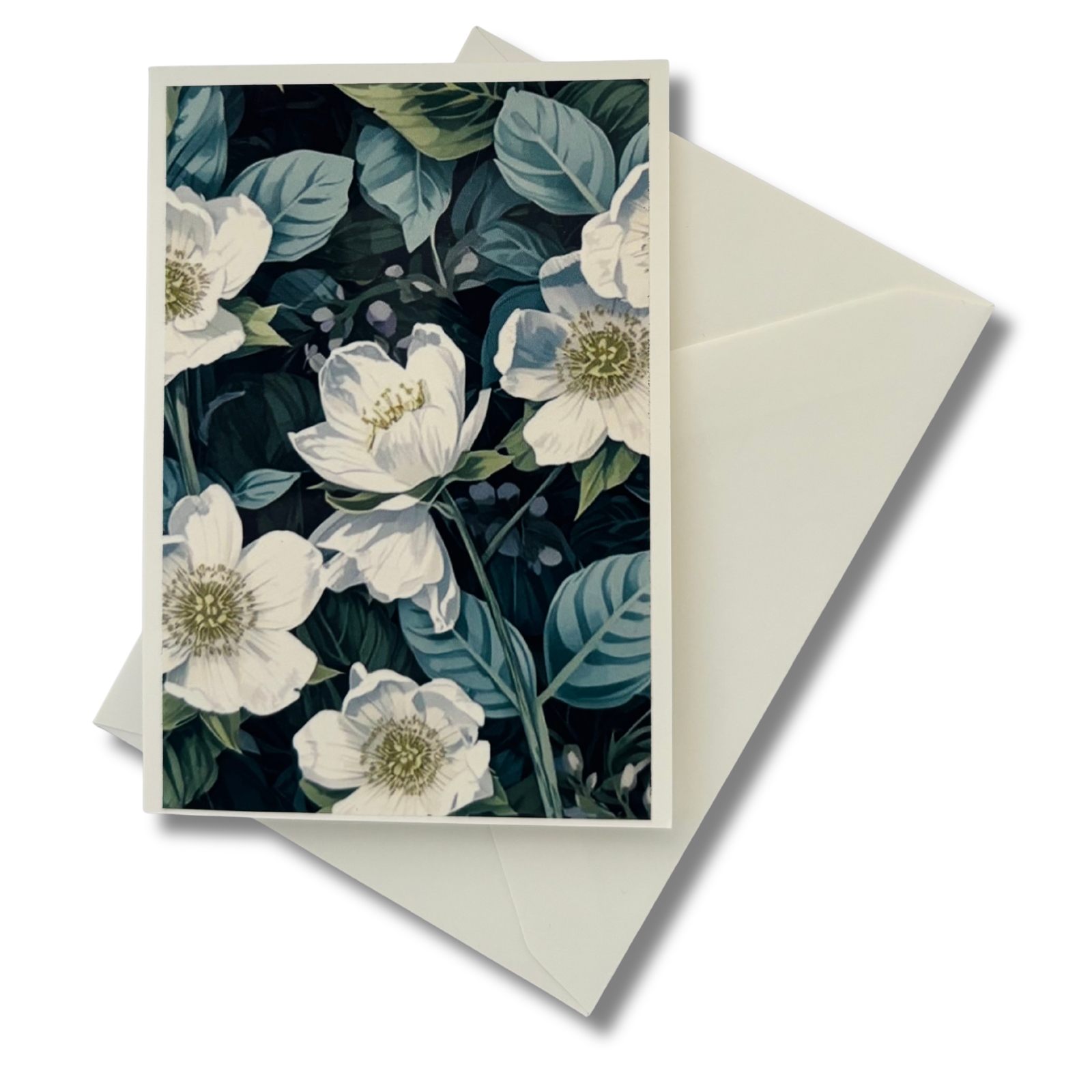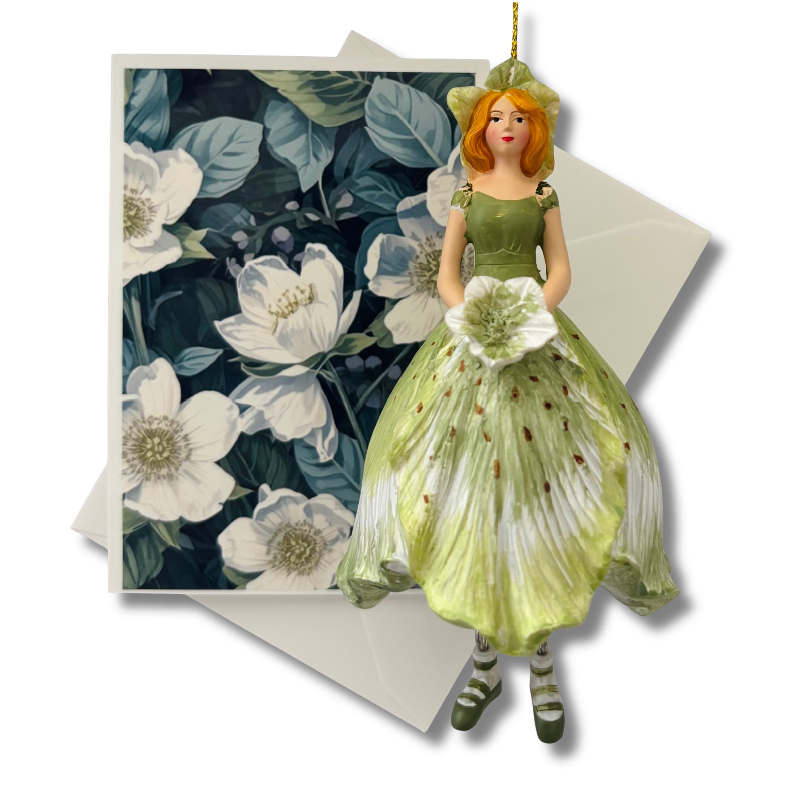 Diese liebevoll gestaltete Mini-Karte greift das Motiv der Christrose auf und stellt die Pflanze selbst in den Mittelpunkt. Die Vorderseite zeigt das florale Motiv als zart gerahmten Akzent auf dunklem Grün – abgestimmt auf das weiße Christrosen-Blumenmädchen, aber auch für sich ein kleiner Blickfang. Ein separates Einlegeblatt liegt bei und bietet Raum für persönliche Grüße, kleine Botschaften oder feine Gedanken.
