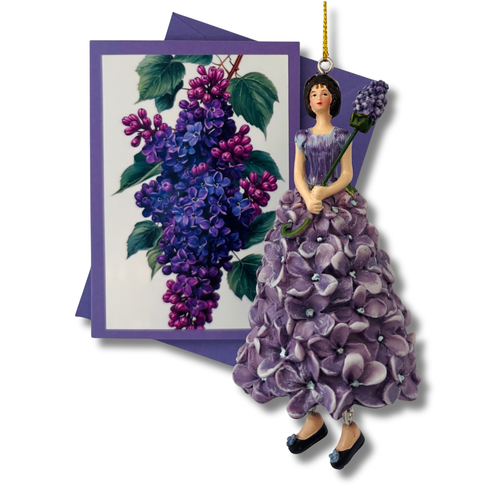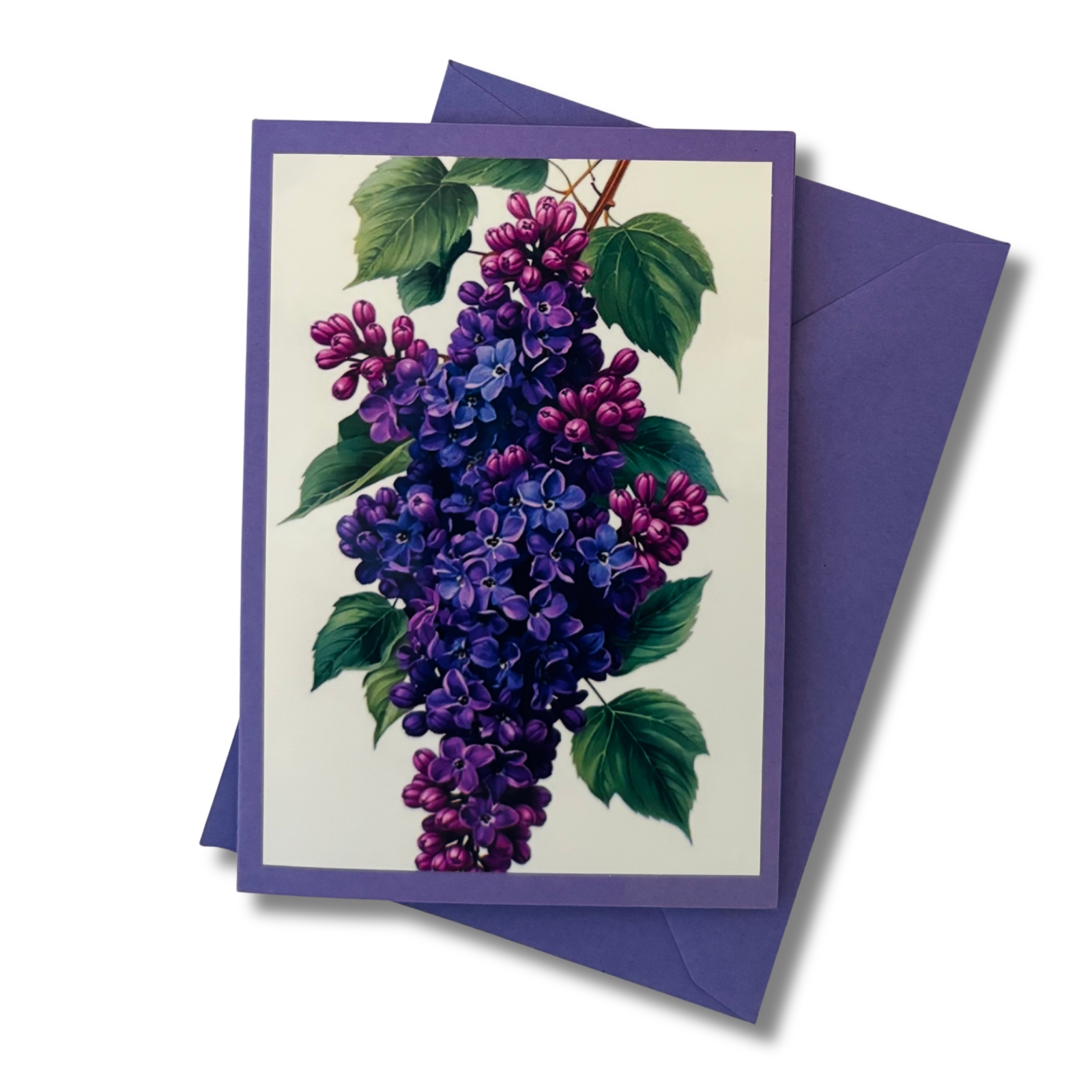Diese liebevoll gestaltete Mini-Karte greift das Motiv des Flieders auf und stellt die Pflanze selbst in den Mittelpunkt. Die Vorderseite zeigt das florale Motiv als zart gerahmten Akzent auf kräftigem Lila – abgestimmt auf das dunkel-lila Flieder-Blumenmädchen, aber auch für sich ein kleiner Blickfang. Ein separates Einlegeblatt liegt bei und bietet Raum für persönliche Grüße, kleine Botschaften oder feine Gedanken.