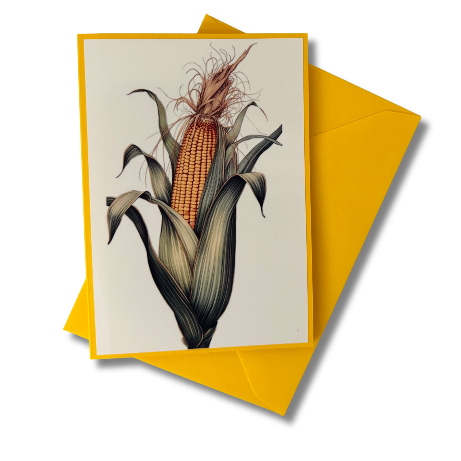 Diese liebevoll gestaltete Mini-Karte greift das Motiv des Mais auf und stellt die Pflanze selbst in den Mittelpunkt. Die Vorderseite zeigt das florale Motiv als zart gerahmten Akzent auf leuchtendem Gelb – abgestimmt auf das Mais-Blumenmädchen, aber auch für sich ein kleiner Blickfang. Ein separates Einlegeblatt liegt bei und bietet Raum für persönliche Grüße, kleine Botschaften oder feine Gedanken.