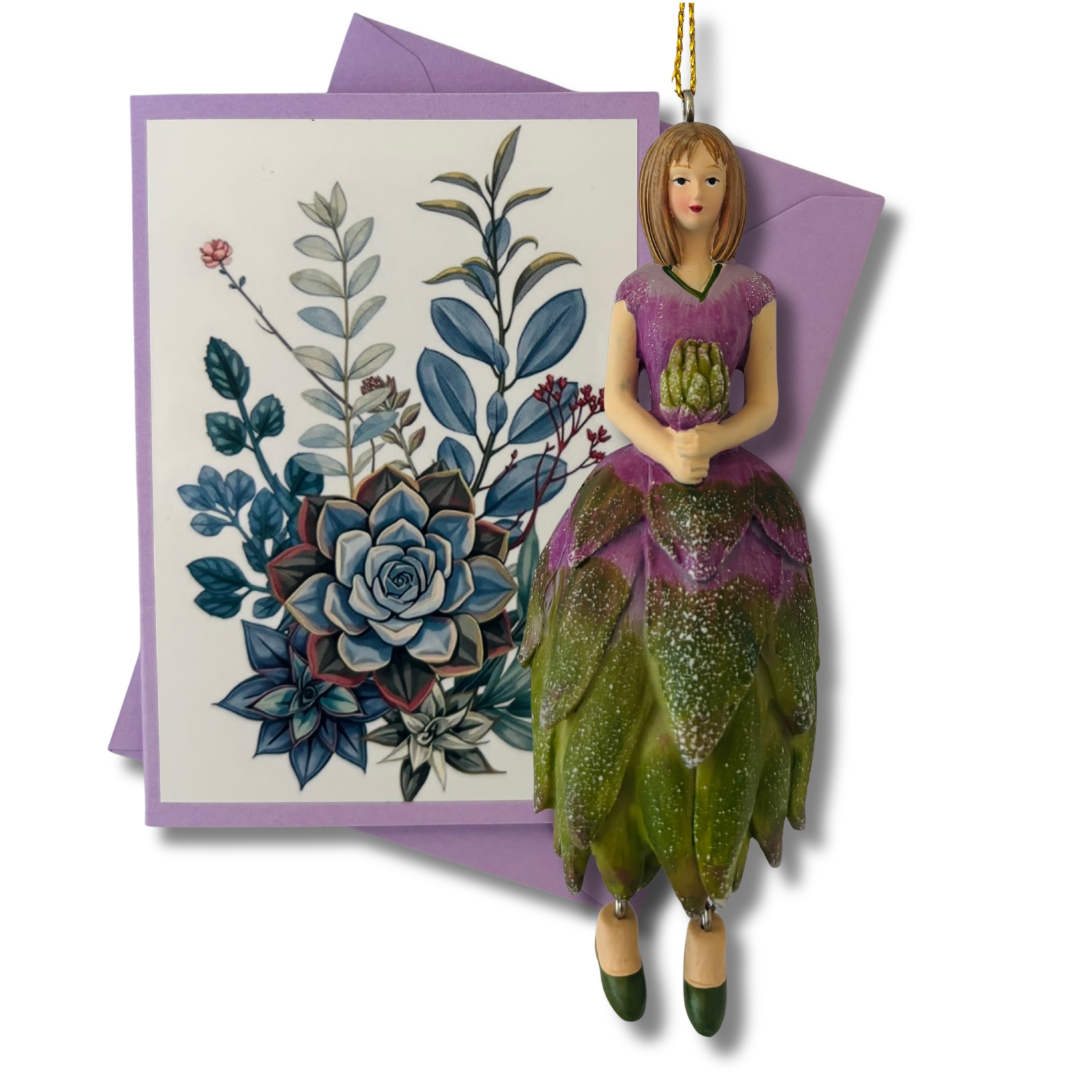 Diese liebevoll gestaltete Mini-Karte greift das Motiv der Protea auf und stellt die Pflanze selbst in den Mittelpunkt. Die Vorderseite zeigt das florale Motiv als zart gerahmten Akzent auf zartem Lila – abgestimmt auf das grün-lila Protea-Blumenmädchen, aber auch für sich ein kleiner Blickfang. Ein separates Einlegeblatt liegt bei und bietet Raum für persönliche Grüße, kleine Botschaften oder feine Gedanken.