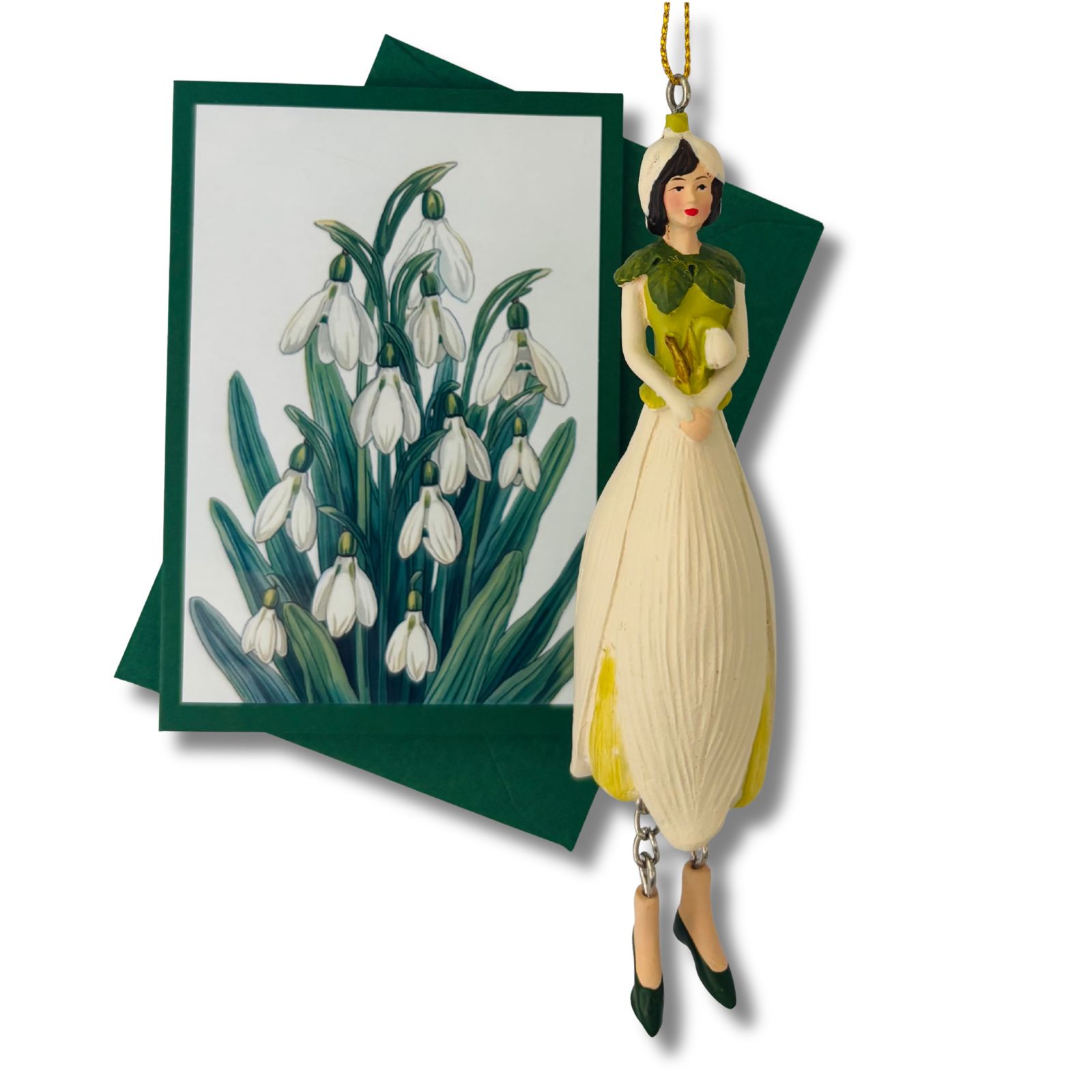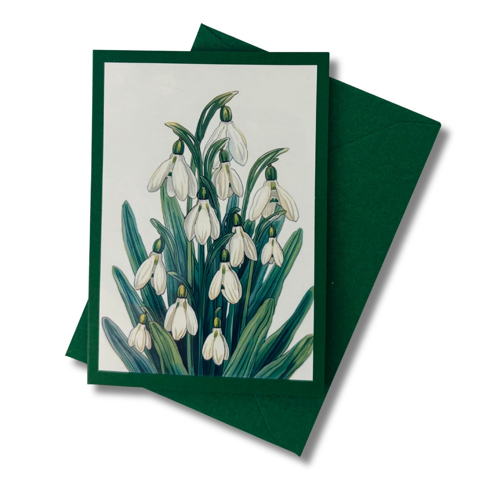 Diese liebevoll gestaltete Mini-Karte greift das Motiv des Schneeglöckchens auf und stellt die Pflanze selbst in den Mittelpunkt. Die Vorderseite zeigt das florale Motiv als zart gerahmten Akzent auf dunklem Grün – abgestimmt auf das Schneeglöckchen-Blumenmädchen, aber auch für sich ein kleiner Blickfang. Ein separates Einlegeblatt liegt bei und bietet Raum für persönliche Grüße, kleine Botschaften oder feine Gedanken.