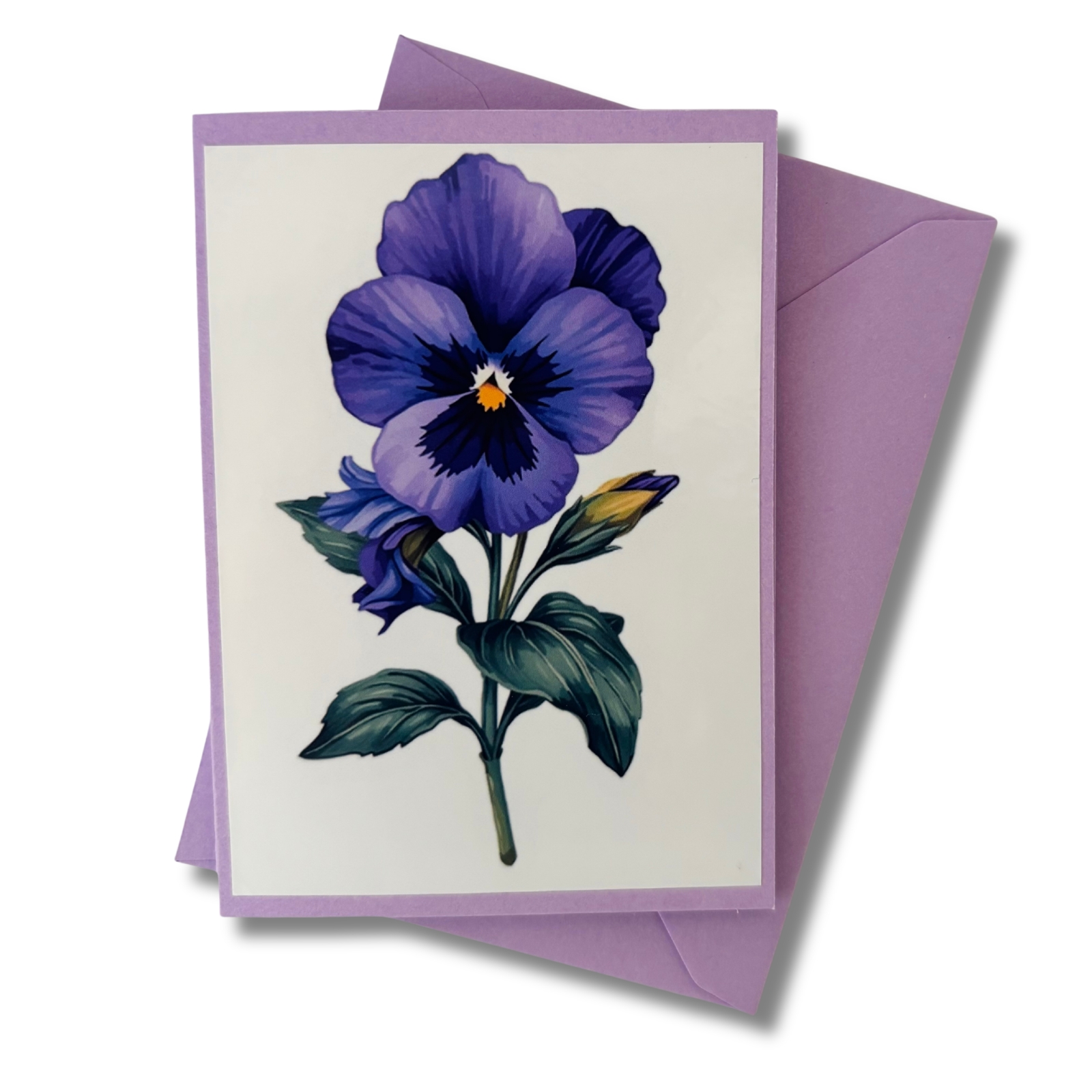 Diese liebevoll gestaltete Mini-Karte greift das Motiv des Stiefmütterchens auf und stellt die Pflanze selbst in den Mittelpunkt. Die Vorderseite zeigt das florale Motiv als zart gerahmten Akzent auf zartem Lila – abgestimmt auf das Stiefmütterchen-Blumenmädchen, aber auch für sich ein kleiner Blickfang. Ein separates Einlegeblatt liegt bei und bietet Raum für persönliche Grüße, kleine Botschaften oder feine Gedanken.