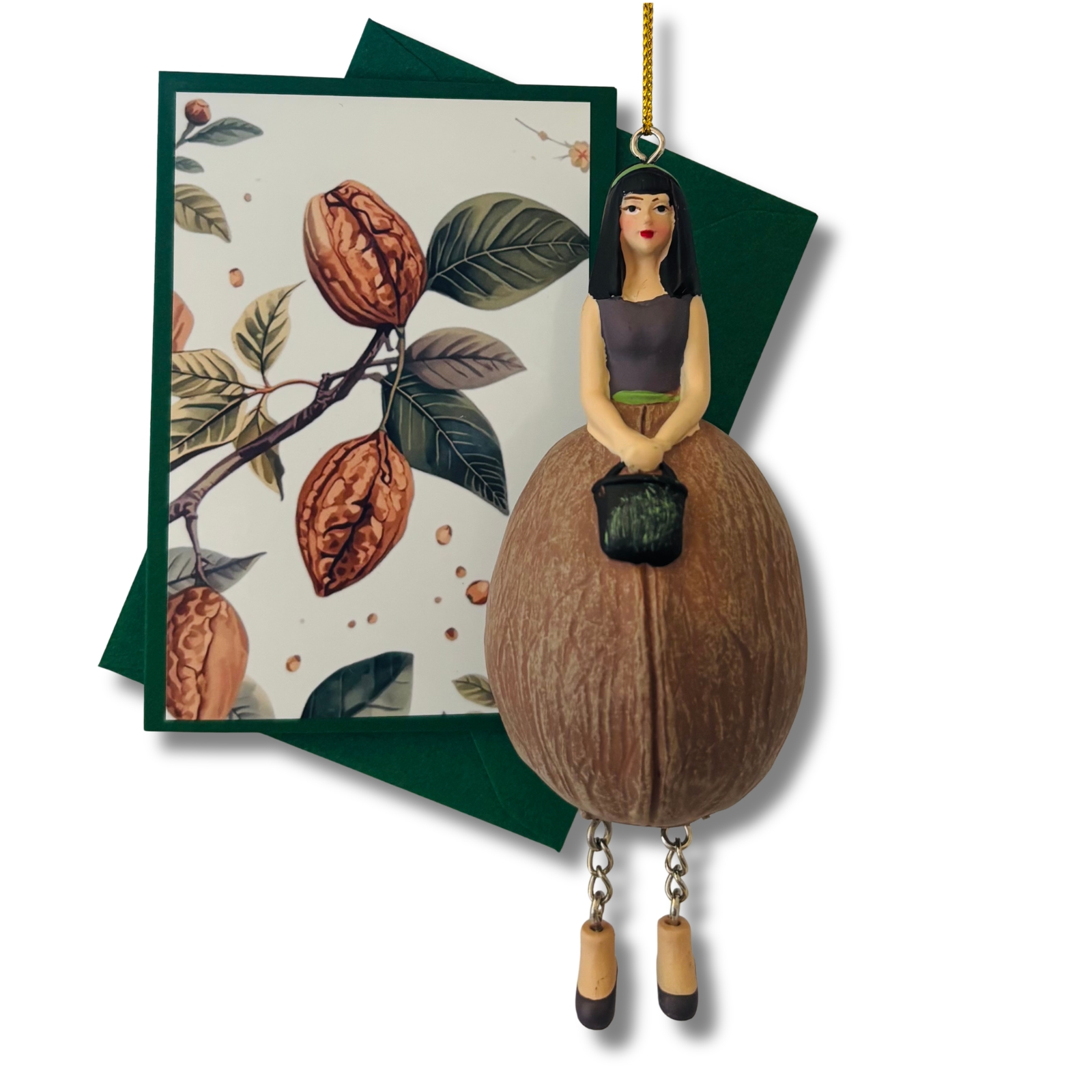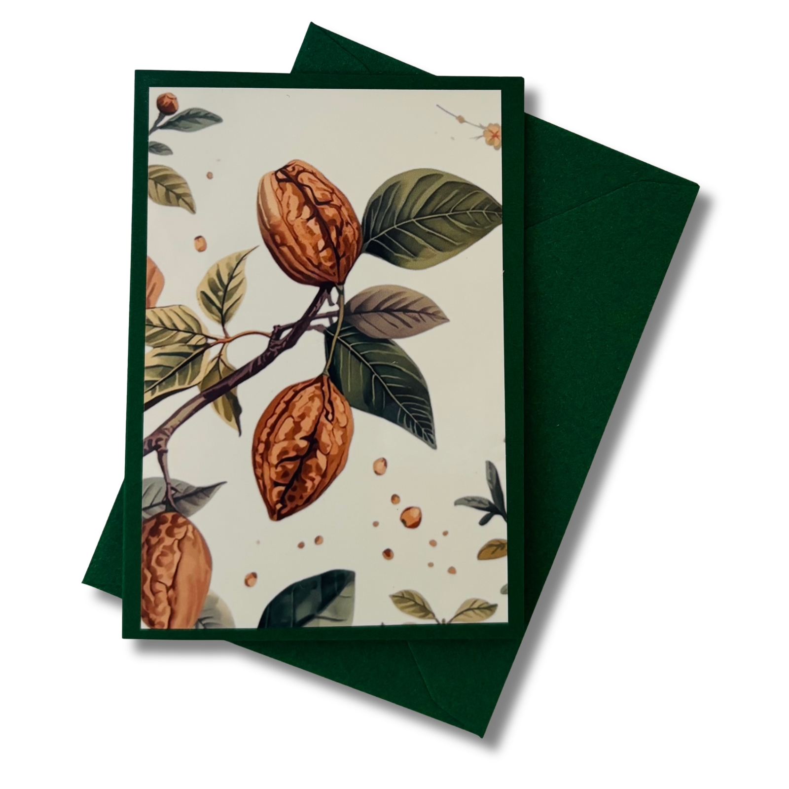 Diese liebevoll gestaltete Mini-Karte greift das Motiv der Walnuss auf und stellt die Pflanze selbst in den Mittelpunkt. Die Vorderseite zeigt das florale Motiv als zart gerahmten Akzent auf dunklem Grün – abgestimmt auf das Walnuss-Blumenmädchen, aber auch für sich ein kleiner Blickfang. Ein separates Einlegeblatt liegt bei und bietet Raum für persönliche Grüße, kleine Botschaften oder feine Gedanken.