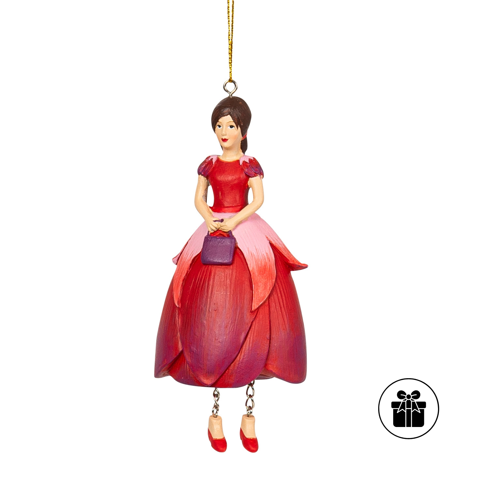 Die Figur wirkt beinahe schwebend und bringt einen Hauch von Verspieltheit und Farbe in jeden Raum. Sie ist ein wunderschöner Blickfang für alle, die florale Eleganz lieben und Freude an detailreichen, liebevoll gestalteten Figuren haben.