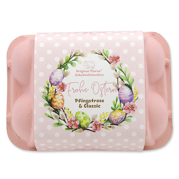 Ostern zum Verschenken – Schafmilchseifen Pfingstrose/Classic im Eierkarton