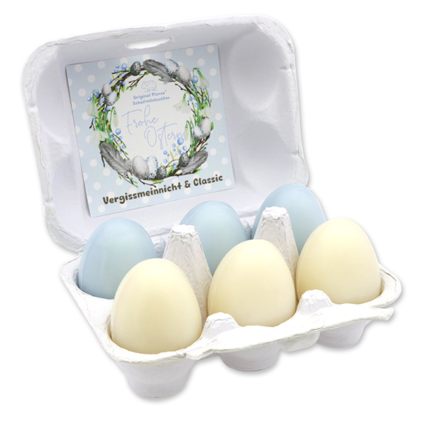 Ostern zum Verschenken – Schafmilchseifen Vergissmeinnicht/Classic im Eierkarton